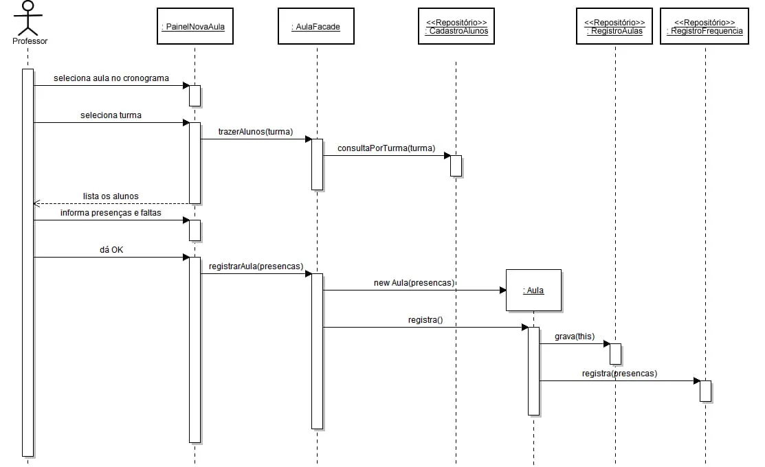 Pessoal, gostaria que dessem seus pitacos nesta modelagem que eu fiz. O objetivo é abrir uma aula no sistema, informando quem está presente e quem faltou, mantendo assim o registro das aulas (andamento da turma) e de frequência.