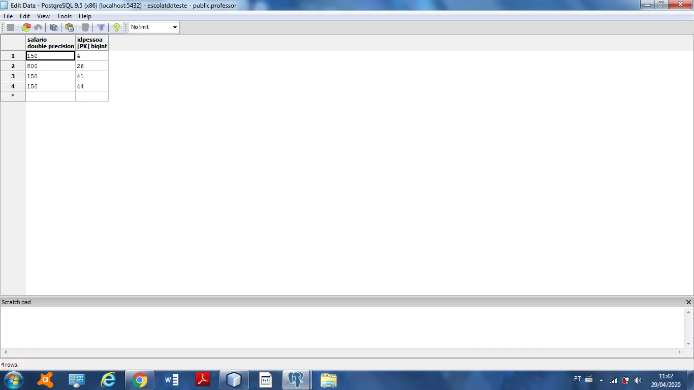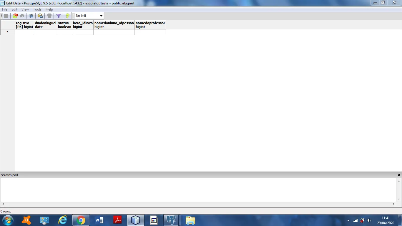 Quando eu executo não há indicação de erro, mas por algum motivo os dados do professor não aparecem no banco de dados de “Aluguel” como se não estivessem sendo salvos.