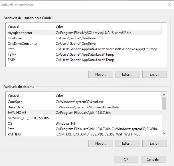 o JAVA_HOME = C:\Program Files\Java\jdk-12.0.2\bin, coloca apenas