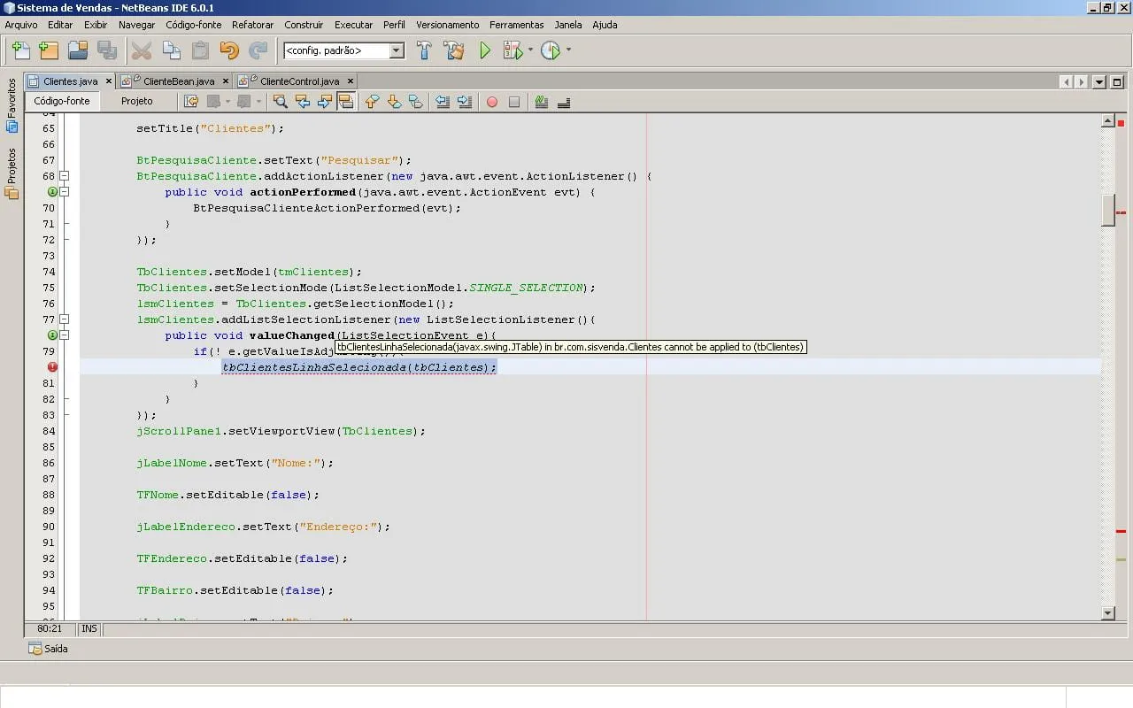 Na screen que você postou no primeiro tópico o método “tbClientesLinhaSelecionada” chamado no valueChanged tava com o “tb” minúsculo…