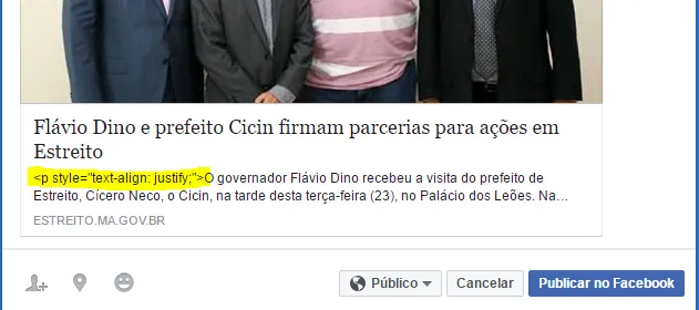 Estou com o seguinte problema, eu adicionei um botão do face para compartilhar conteúdo do site, o problema é que ao abrir para compartilhar ele fica lendo as tags HTML, alguém já viu algo do tipo ? segue a imagem de como está.