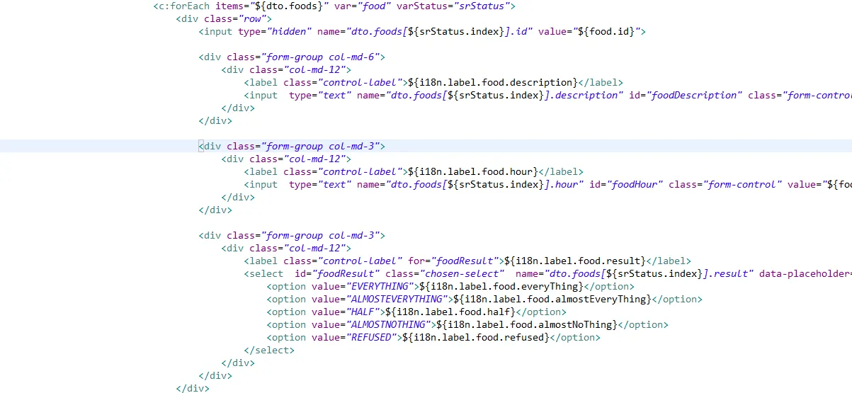 <input type="text" name="dto.foods[${srStatus.index}].hour" id="foodHour" class="form-control" value="${food.hour}">