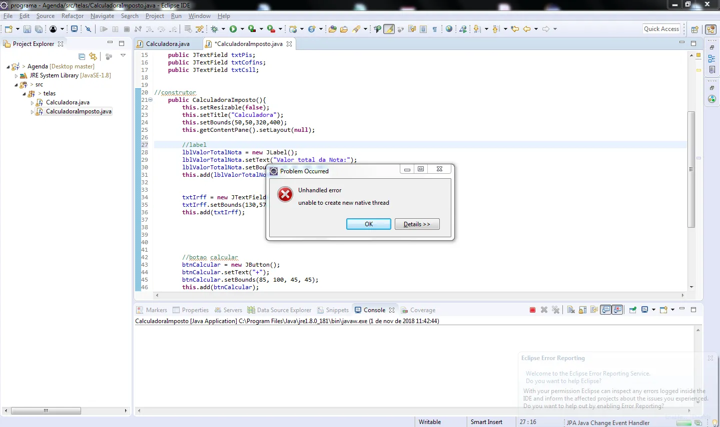 Você configurou seu heap? Tem certeza que não está alocando toda a memória do mesmo?