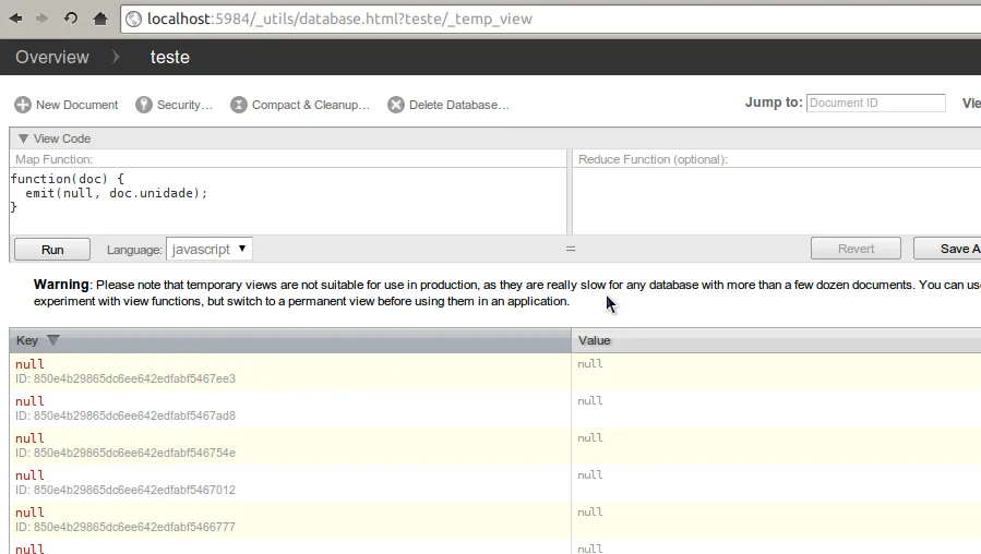 Eu criei um parser para transformar xml em json e exportar isso pro couchdb. O programa aparentemente funciona direitinho, mas quando vamos recuperar os dados do valor importado no couch ele retorna null. Sendo que no futon ele enxerga todos os dados importados!!!