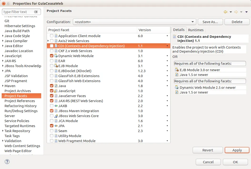 MeuProjeto org.apache.maven.plugins maven-compiler-plugin 3.3 1.8 1.8 UTF-8 org.glassfish javax.faces 2.2.12 org.primefaces primefaces 6.0