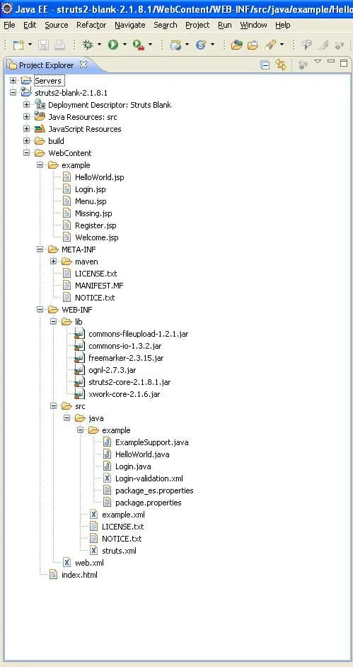 Estou tentando rodar um helloworld que ja vem no struts-2.1.8.1-all.zip.