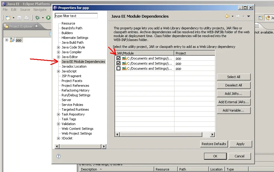 Só uma duvida , qual diferença entre as blibliotecas do Java EE Module Dependencies e as libraries do Java Build Path ?