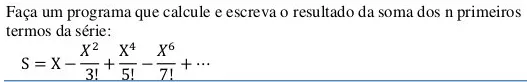 Eu vou receber x e um inteiro n que indica a quantidade de termos da série, a entrada termina quando x=0 e n=0.
