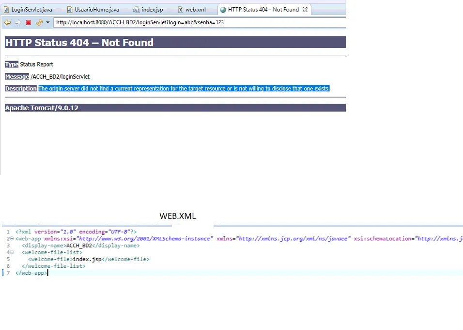 Estou tendo esse problema ao iniciar meu projeto, a ideia é fazer engenharia reversa do banco MySQL e criar um CRUD, para poder criar, deletar dados por meio do servidor web. Usando um sistema de Login para usuários também, mas estou tendo problemas, pois ao digitar um usuário e senha qualquer, ele nem mesmo consegue achar o servlet de login para proceder com o erro de usuário inválido.