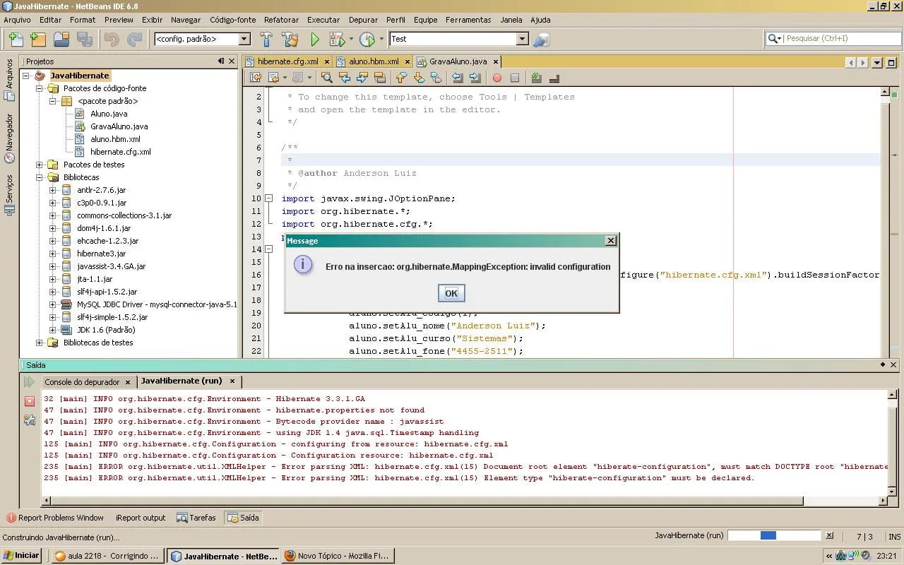 Mapeamento do aluno"-//Hibernate/Hibernate Configuration DTD 3.0//EN"