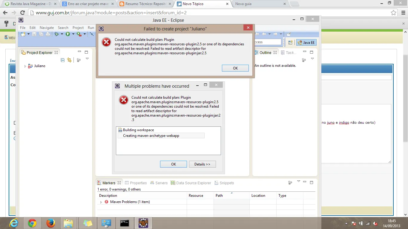 Errors running builder 'Maven Project Builder' on project 'Juliano'.