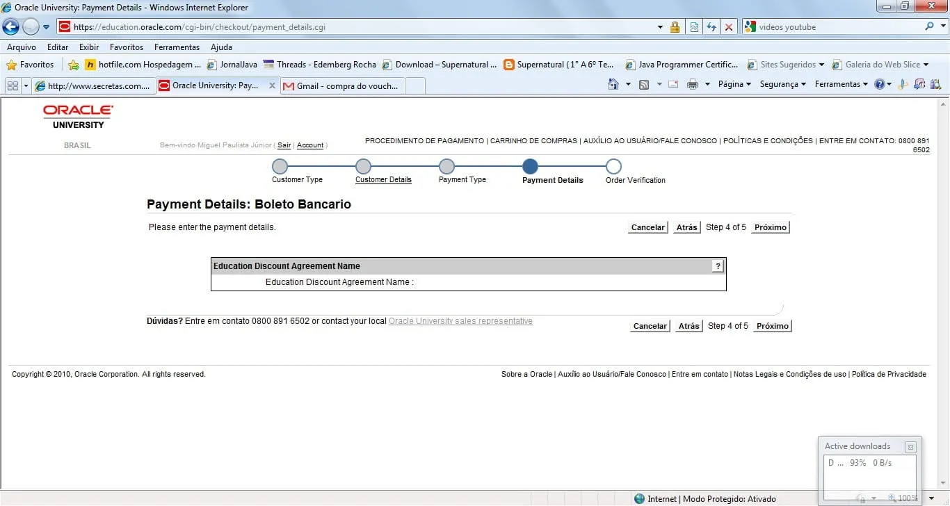 [list]Na tela final de “Order Verification” clique em “eu concordo com os Termos da Oracle University, submeter pedido”.[/list]