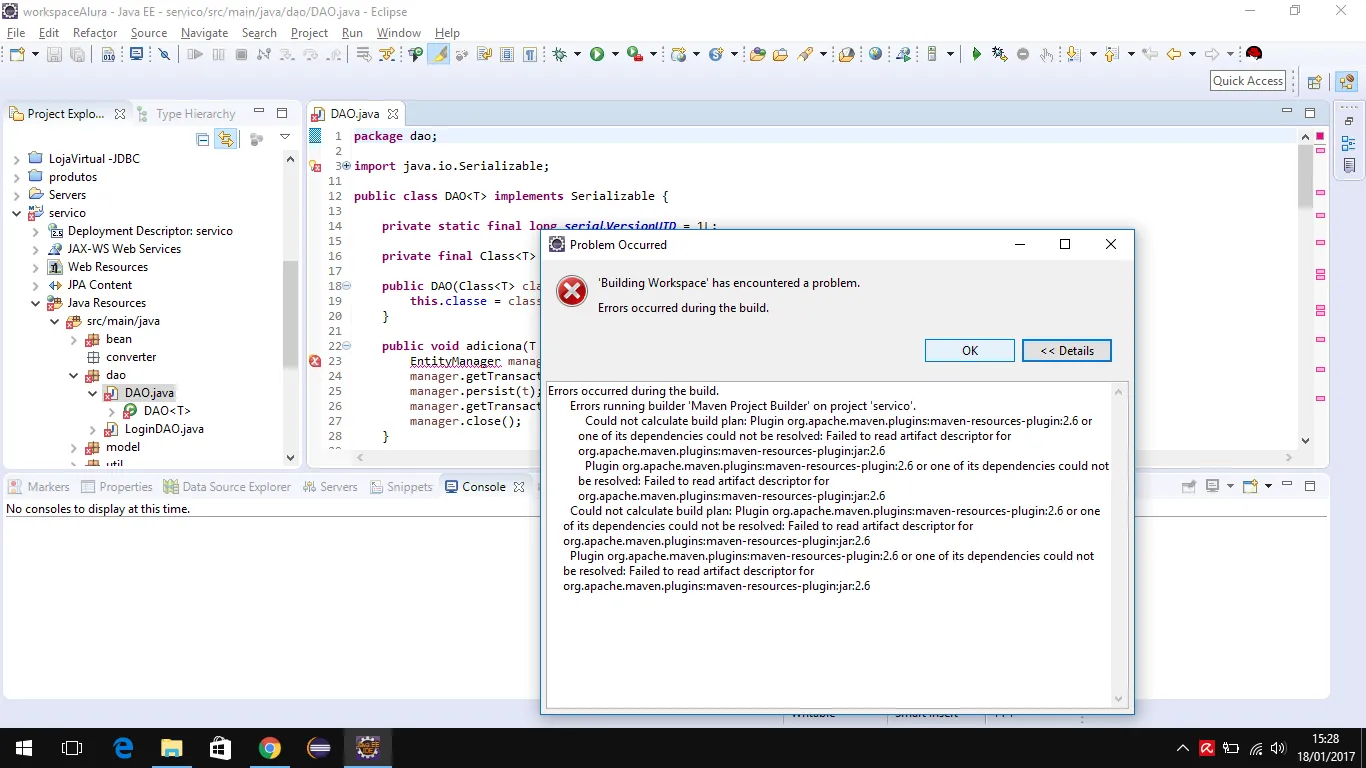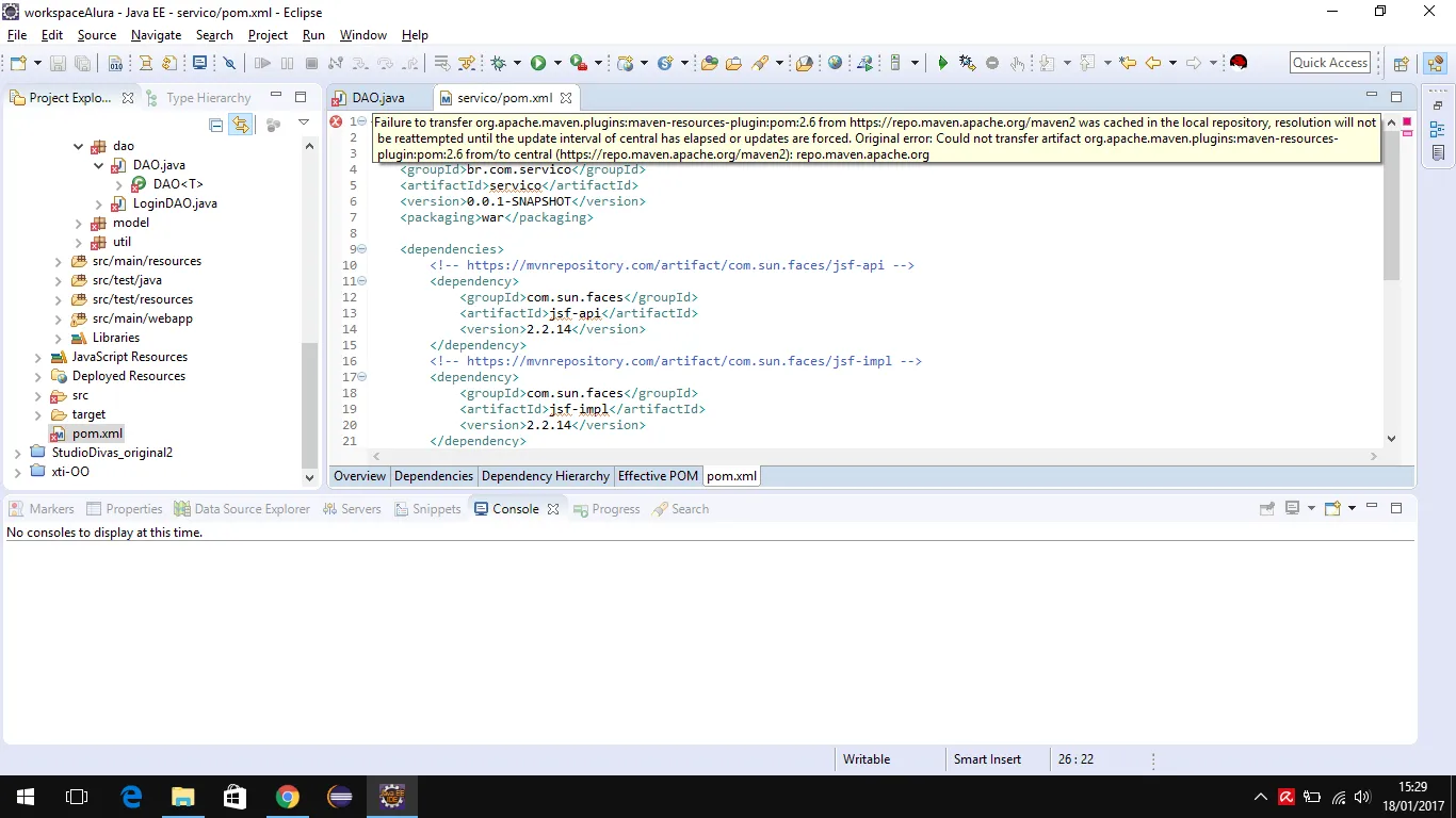 OBS: Tentei criar um projeto maven e apresentou este ero: