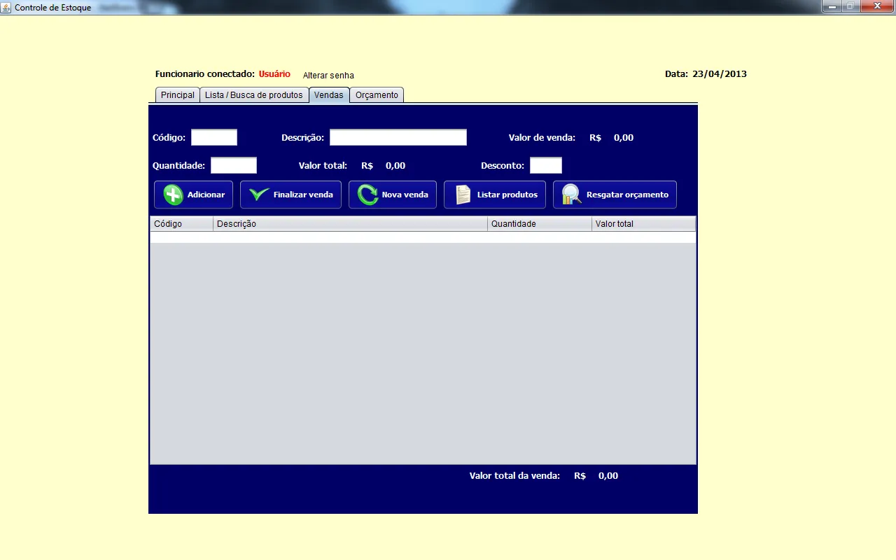 eu criei o programa com o layout null