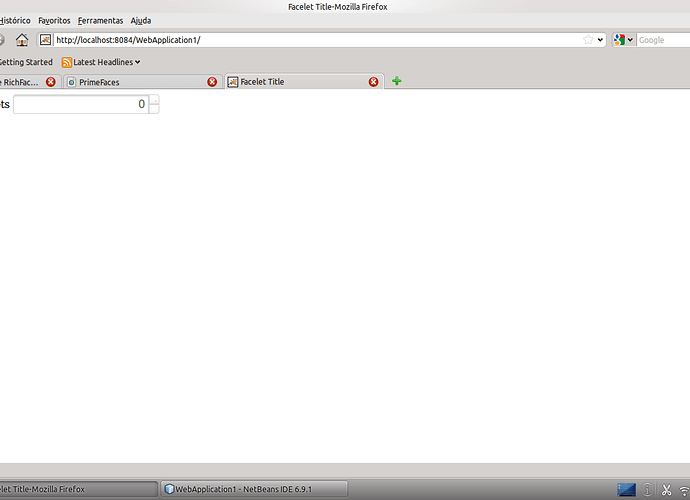 Essa pagina funciona se crio uma nova aplicação e adiciono o jar. Se eu adicionar o jar na aplicação antiga que estava com o RichFaces e tentar abrir essa pagina, só aparece o texto “Hello from Facelets”, mas o componente <p:spinner /> não aparece.