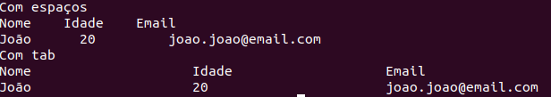 Em geral, quando você cria um documento de texto em que determinados valores precisam ser posicionados de forma adequada, você separa os “elementos” usando a tecla tab e não a space.