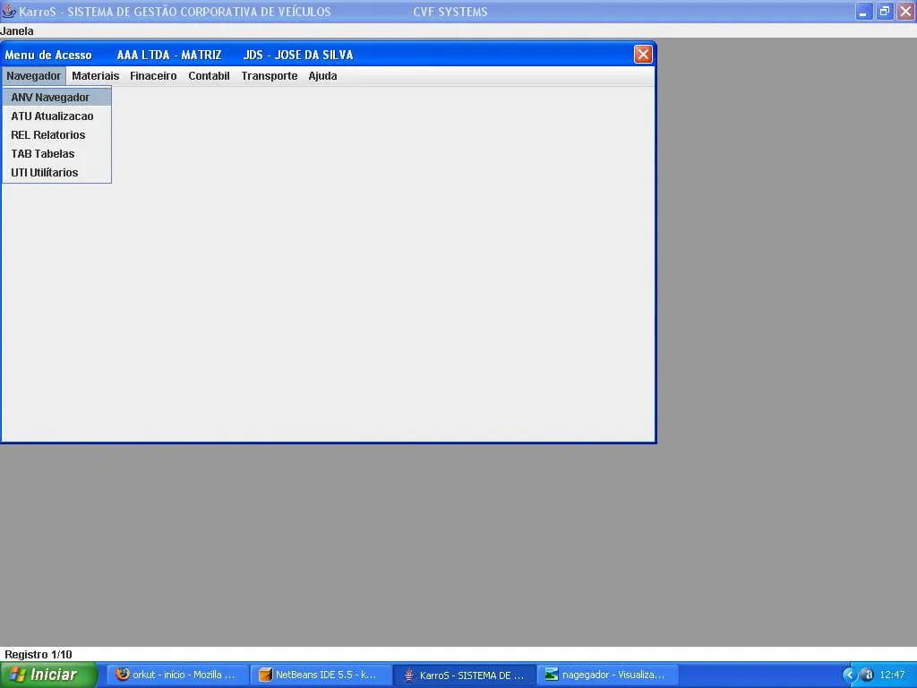 tem-se uma Jframe(tela q ocupa toda a tela) que chama um JDialog(tela menor, que contem o menu do sistema)…