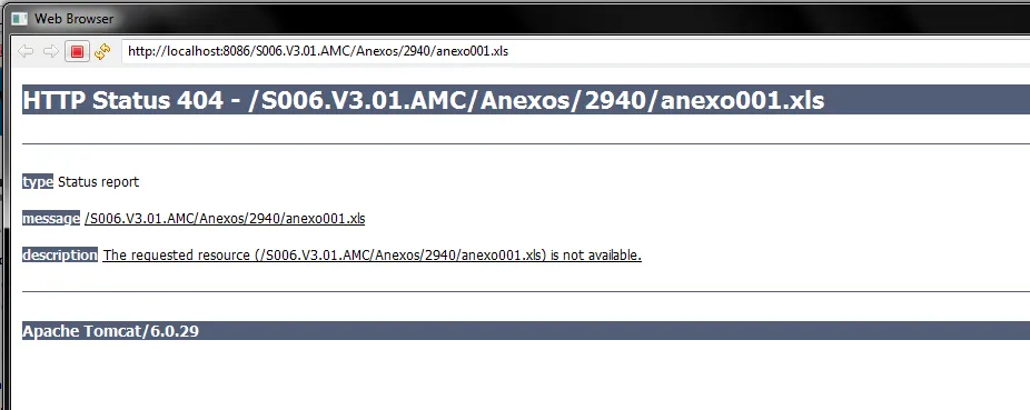Seguinte, no sistema aqui da empresa, pelo que percebi, tem Struts implementado. Conseguir fazer o sistema rodar belezinha e talz. Mas o sistema trabalha com anexos (diversos tipos, .pdf, .doc, .ods, etc). A pergunta é: tem algum arquivo de configuração específico que aponte para um diretório? Pq qnd clico no anexo, o que está na rede abre normalmente a janela onde tem “Abrir, Salvar, Cancelar”, e pelo Eclipse não. Ao invés disso, dá o seguinte erro em anexo: