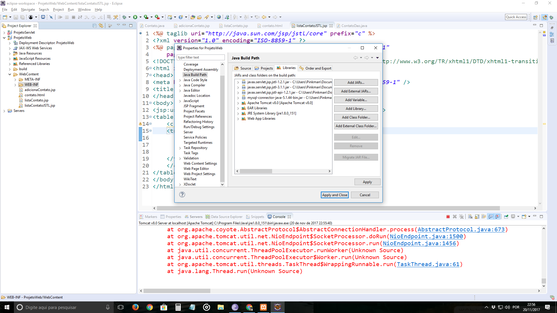 Gente, criei essa página e add jstl, coloquei esses arquivos na build patch, mas n roda, o resto do projeto está rodando perfeitmente.