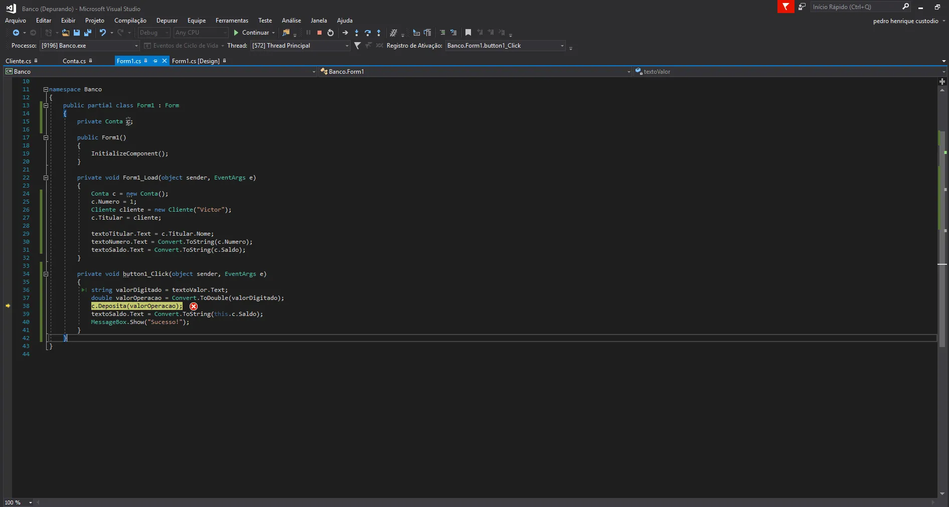 Ocorreu uma exceção sem tratamento do tipo “System.NullReferenceException” em Banco.exe