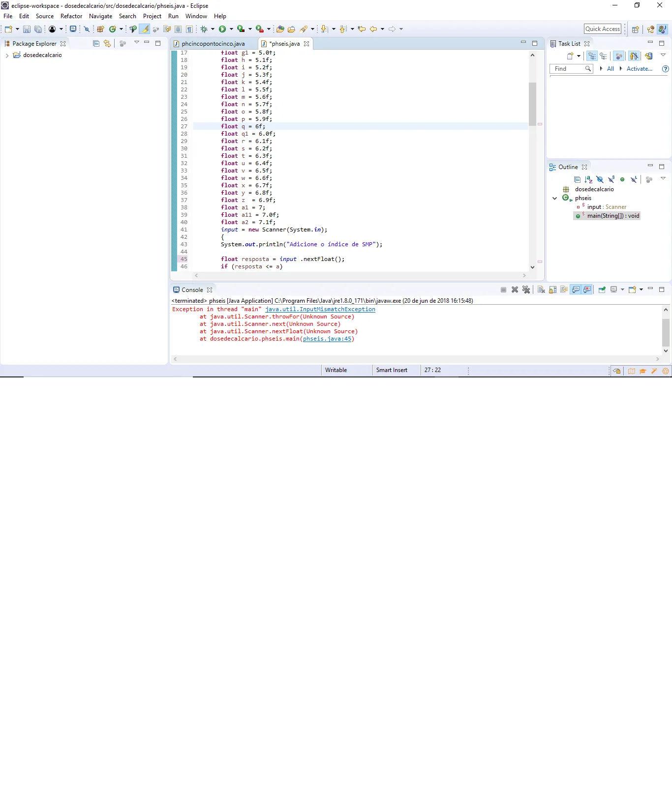 Agora, a exceção InputMismatch indica que algo que não é compativel com o esperado foi lido.