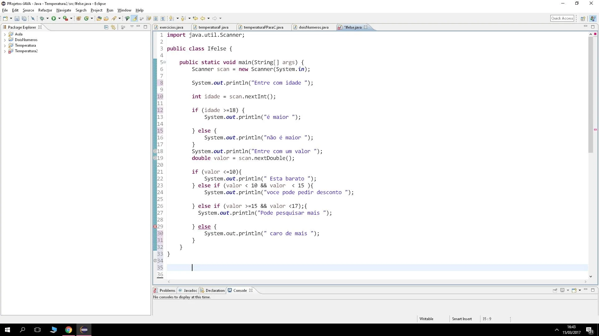 Não vai ; em IF