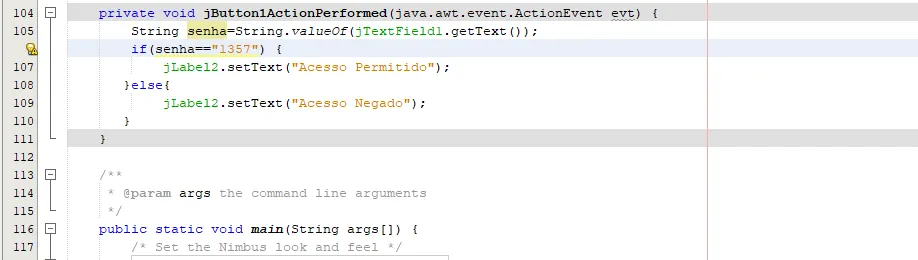 if (senha.equals("123456") {