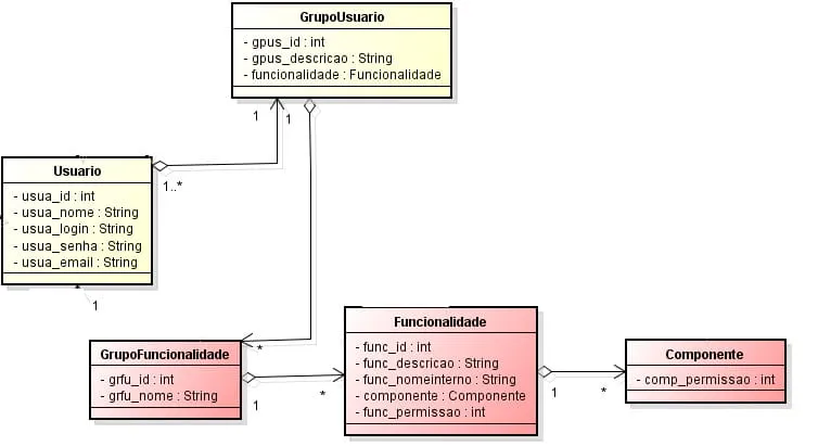 Olá, analise por favor a imagem em anexo. Levando em conta o relacionamento de grupo de usuário com grupo de funcionalidade segue os anotations: