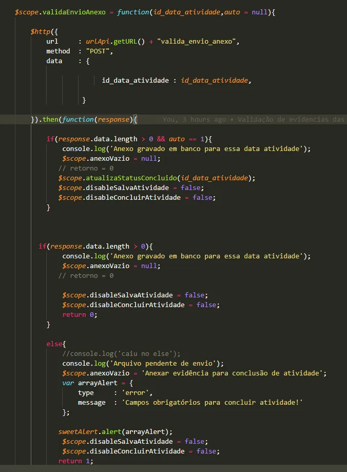 Boa tarde, estou tendo um problema com retorno dessa função, percebi que se eu der return dentro da promissa THEN, nao retorna nada, agora se eu colocar return fora das promissas, consigo sim um retorno, tentei tambem atribuir o valor a uma Scope variavel e recuperar la no if de verificação, tambem sem sucesso!