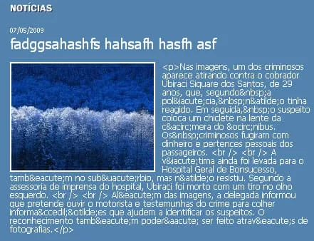 O html do corpo da noticia que esta no BD esta sendo interpretado como texto: