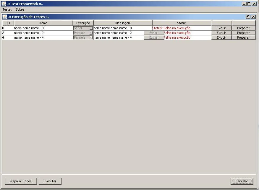 Seguinte. Eu precisei de uma tabela que contivesse algumas colunas com JButton, outra com JComobox. Para isso eu criei um render e um editor para cada tipo desejado e atribui na coluna seu respectivo tipo. Isso funcionou de boa. Desta forma eu pude criar um objeto controller para ficar ouvindo notificações de eventos dos testes em execução e alterar as informações de tela de maneira simples. Contudo, quando eu clico no botão “excluir” linha. A linha é removida, mas caso haja alguma linha abaixo dela na tabela, o botão de remover linha não é removido, ficando flutuando na JTable, como mostra o print anexo.
