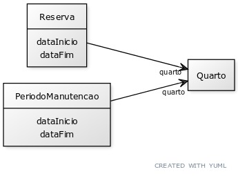 vendo que ambas as classes tem os periodos em comum… sujeria colocar uma interface Periodo onde qualquer elemento que possa inviabilizar um quarto implemente e esta interface faça sua agregação com o quarto… e não 2 classes identicas como na figura… assim não gera dependencias desnecessarias… apenas tera uma dependencia com uma interface e não se importaremos com quem a implemente…