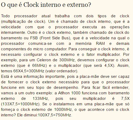 Quando o clock interno do processador é alterado o clock externo é automaticamente alterado?