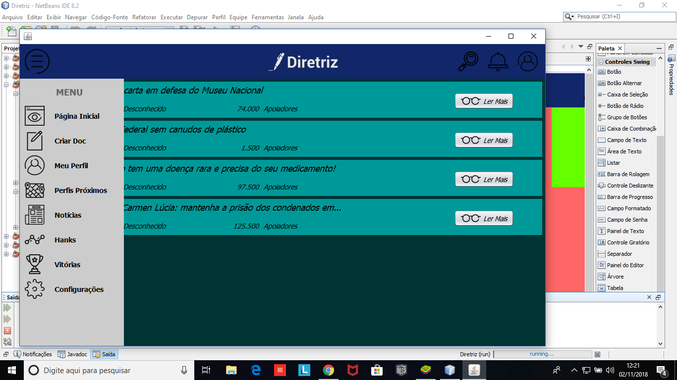 Quero uma ação para diminuir a dimensão do meu painel quando eu solicitar o Menu.