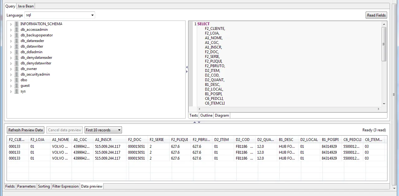 No banco de dados retorno somente um registro no Jasper Studio retorna três registro duplicados