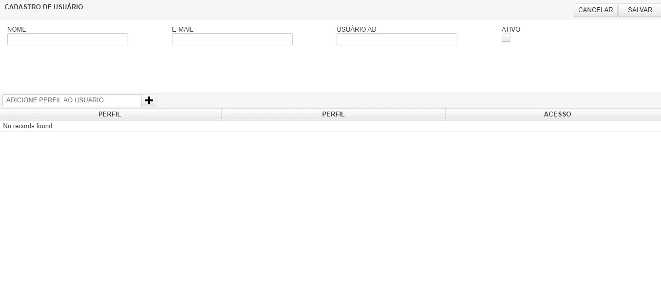 Sendo assim, tenho na parte superior, as informações pertinentes ao usuário, já na datatable, quero vincular quais perfis o usuário terá relacionado a ele! Note que o campo de pesquisa de perfil, é um AutoComplete, cuja pesquisa é oriunda do cadastro de Perfil!
