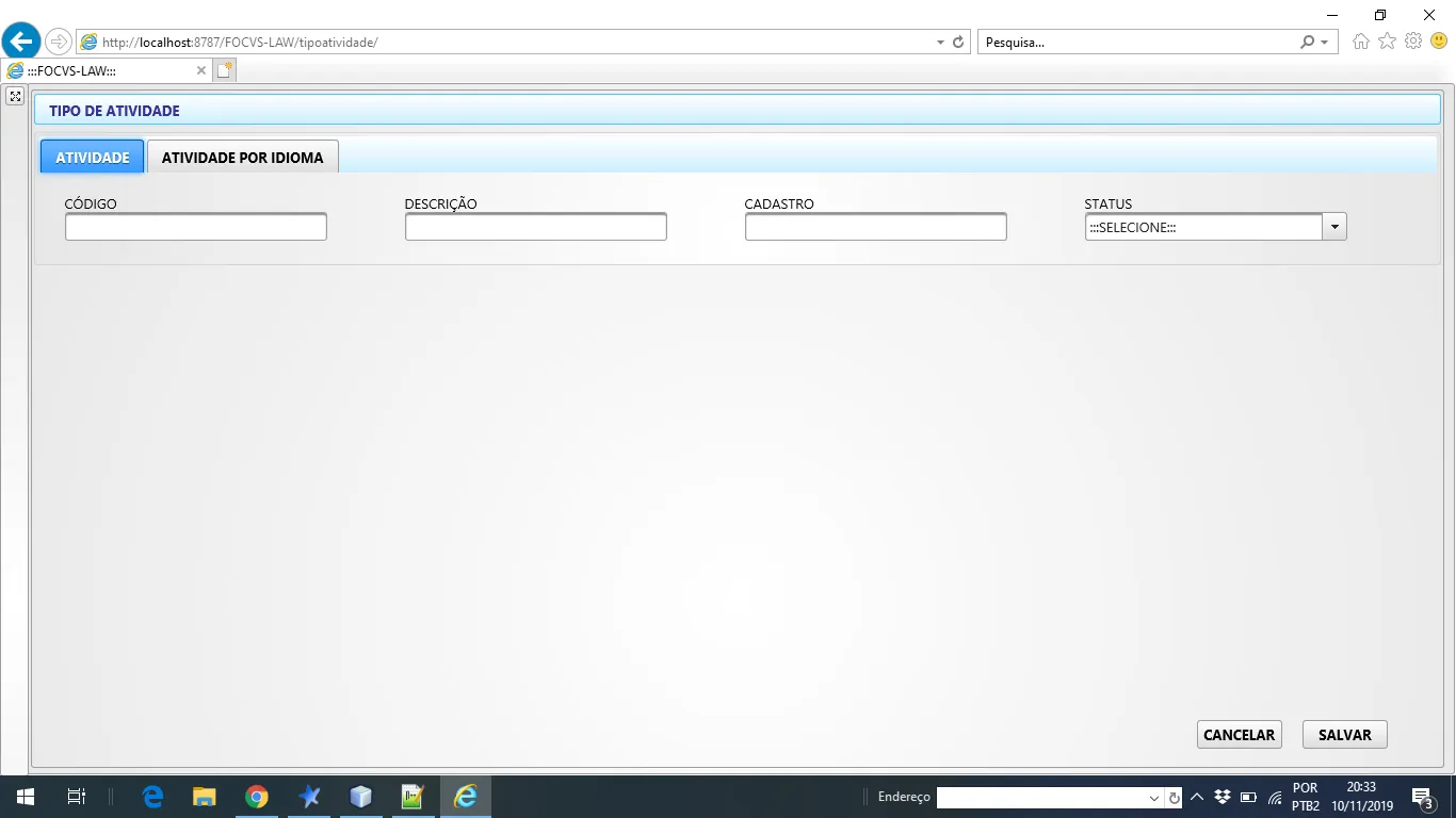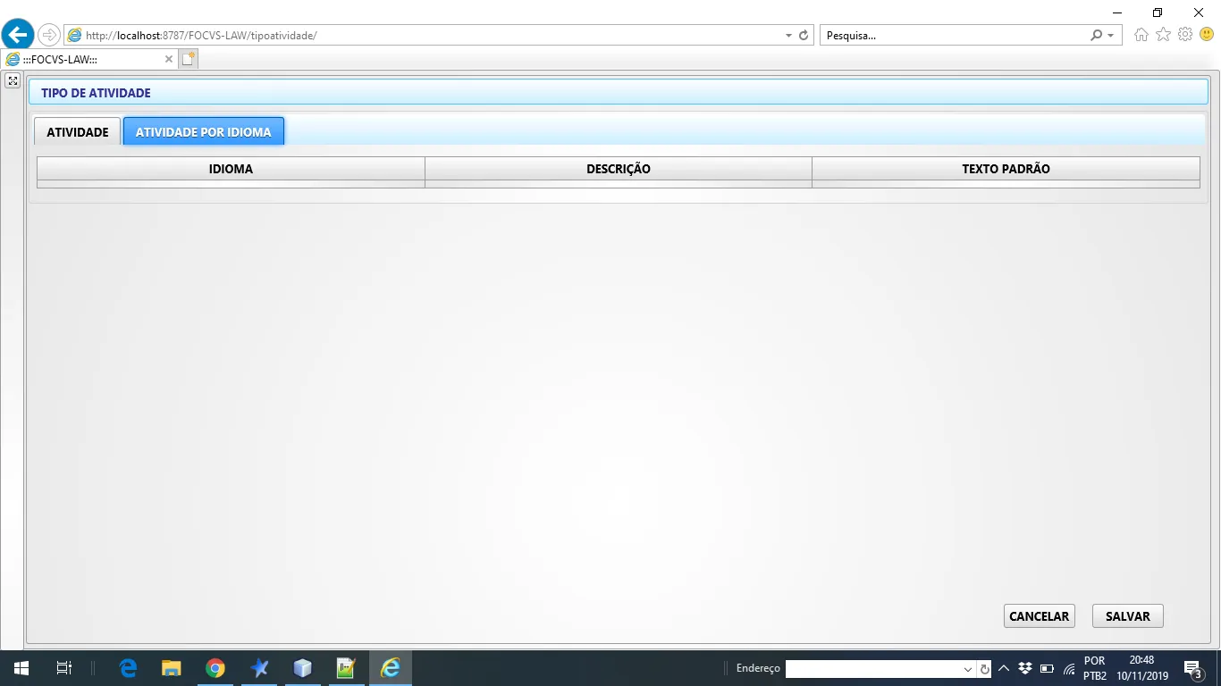 Tenho uma tela conforme abaixo, onde na primeira aba será cadastrada uma atividade, e na segunda aba, está atividade deverá ser traduzida para cada idioma já cadastrado no sistema: