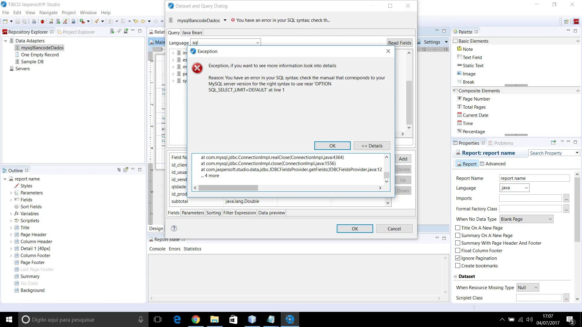 setei para imprimir BLANK WHEN NULL