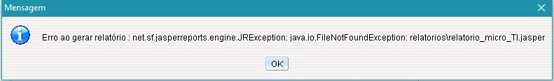 JOptionPane.showMessageDialog(null,"Erro ao gerar relatório : " +erro);