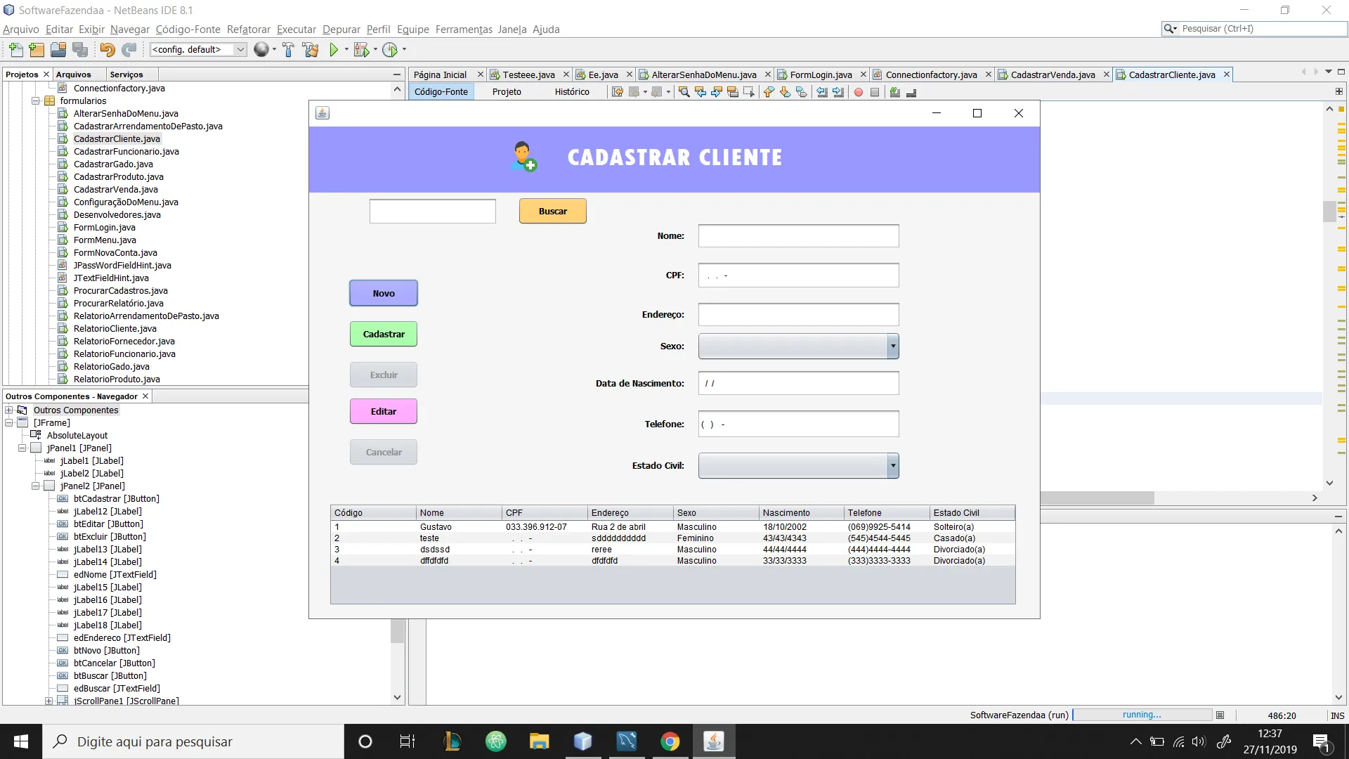 Como podem ver, o CPF mesmo sem digitar nada ele cadastra.