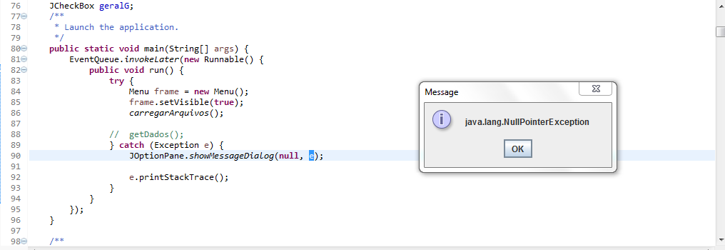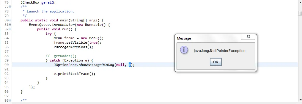 @Kassioburgadon o correto e voce debugar pra localizar onde esta dando esse nullpointer e assim tratar o problema