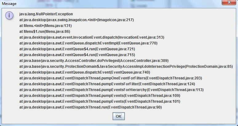 Acho que ele não está encontrando a imagem, ele fica dentro dos jar, provavelmente seja isso btnNewButton.setIcon(new ImageIcon(Menu.class.getResource("/com/sun/javafx/scene/web/skin/IncreaseIndent_16x16_JFX.png")));