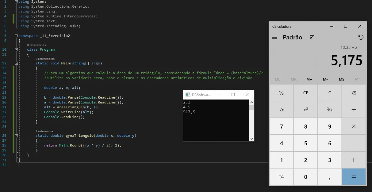 2,3 na calculadora é diferente de 2.3 no código porque nesse código é mil.