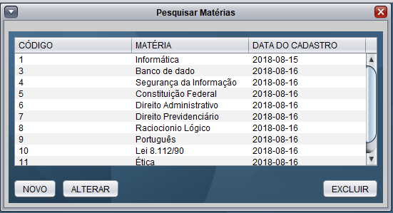 JOptionPane.showMessageDialog(null, "Selecione a matéria");
