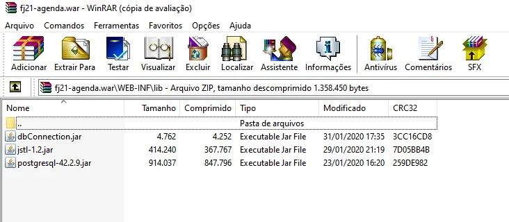Não está, deveria estar dentro de 'WEB-INF/lib " ?