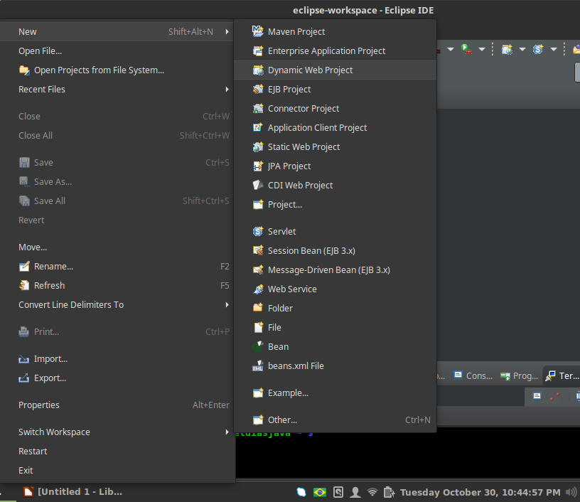 parece que houve alteração na IDE Eclipse quando vai criar um projeto Web. Ela não está batendo com o passo a passo do FJ21 da Caelum. Não consigo achar onde criar um projeto Dynamic Web Project. Sabe se estão usando outra forma? Podem me ajudar? Estou usando a versão 4.9 do Eclipse. O Tomcat está instalado e já testei no browser. Vlw!!