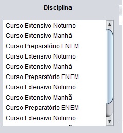 Seguinte Galera, estou fazendo uma interface do perfil do Aluno e estou querendo exibir em um jList as matérias escolhidas por ele. Consegui fazer exibir porém os dados estão se repetindo.