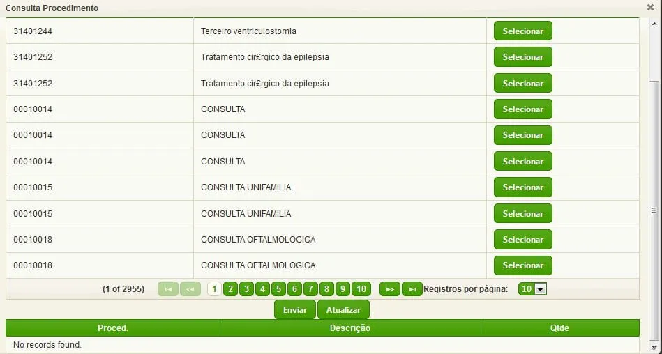 <p:dataTable id="lazyDataTableproc" value="#{cadguiaMbean.tabprocList}" var="tabproc" pemptyMessage="Nenhum registro encontrado."