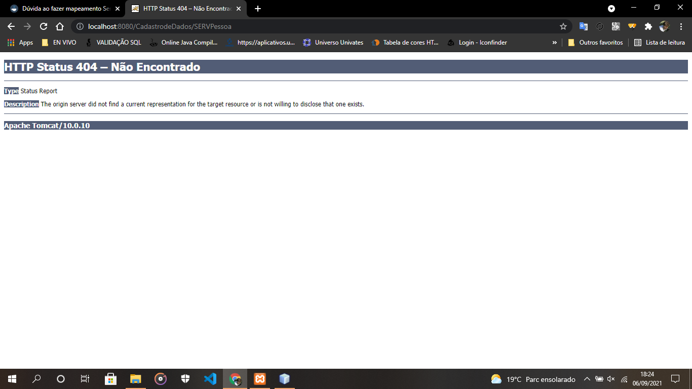 Boa tarde! Sou nova em programação e não estou conseguindo fazer o mapeamento para quem minha página acesse ao Servlet, de todas formas possiveis que coloco, dá o erro 404 não encontrando o bendito, segue os códigos: