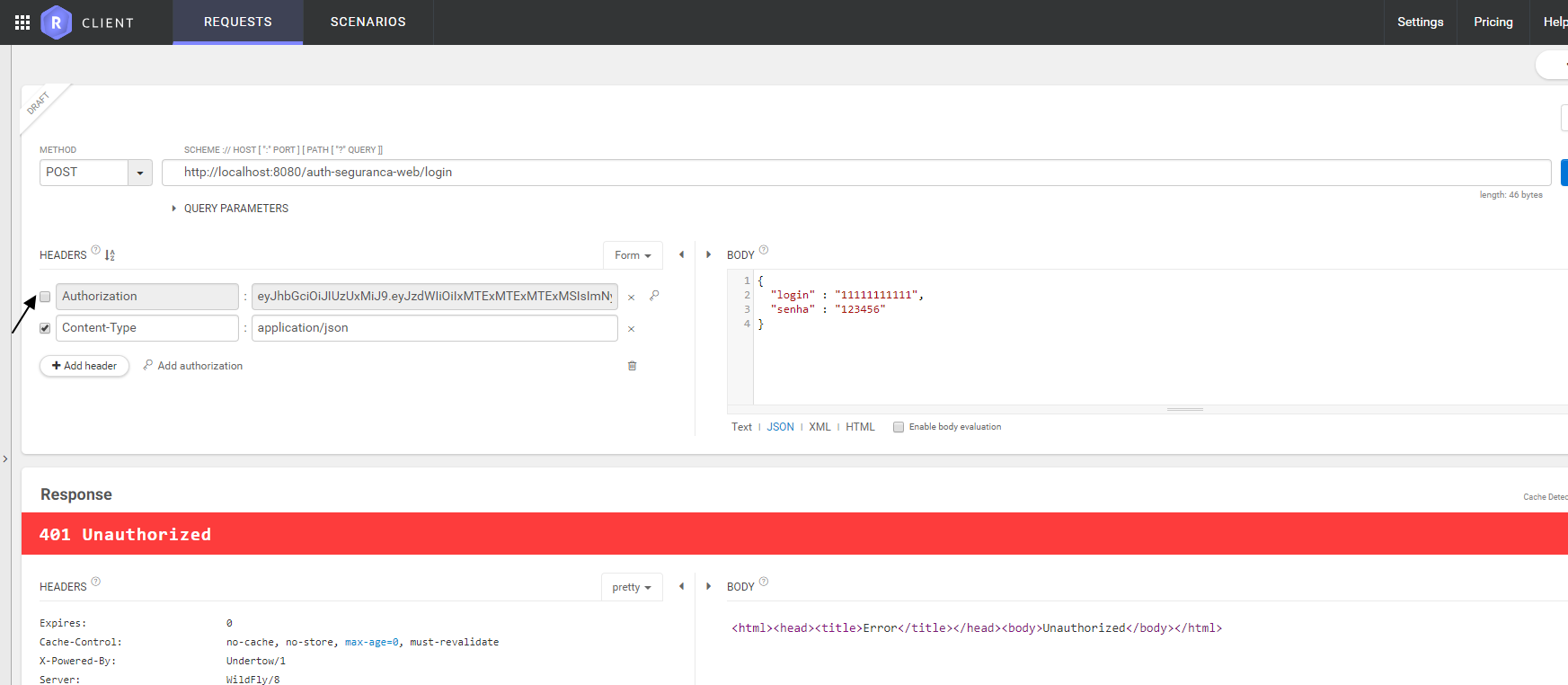 Para eu acessar o /login, devo passar um token válido, se não dá página não autorizada.